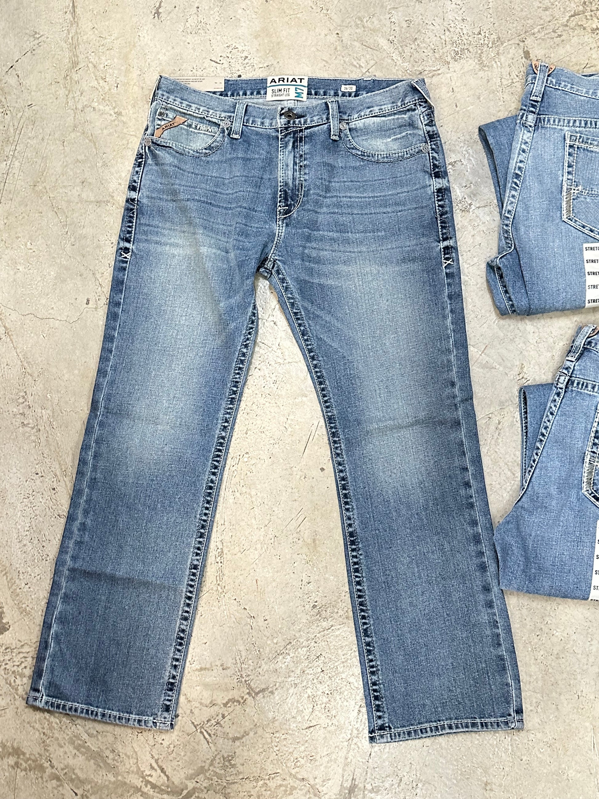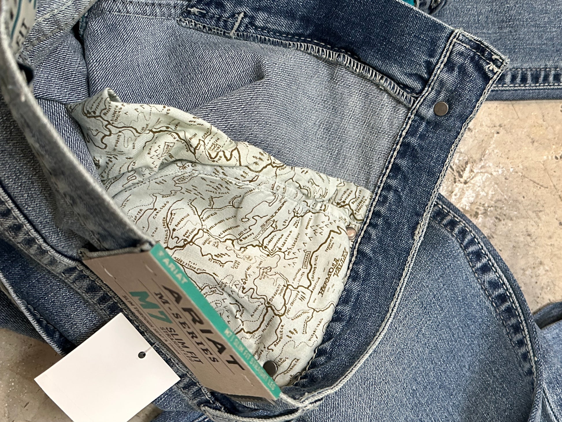 Los Ariat M7 son jeans de corte ajustado diseñados para quienes buscan un estilo moderno y estilizado sin sacrificar la funcionalidad vaquera tradicional. Se caracterizan por ser estrechos en la cadera y el muslo, ofreciendo un perfil limpio que se adapta bien tanto al trabajo como a un uso casual.